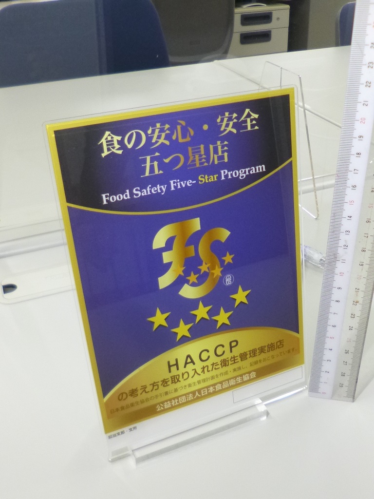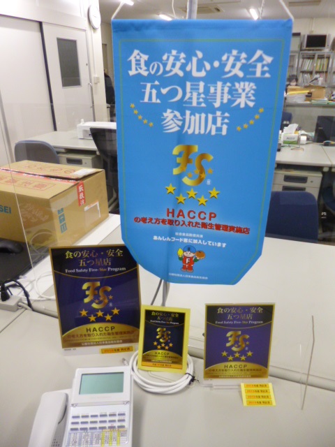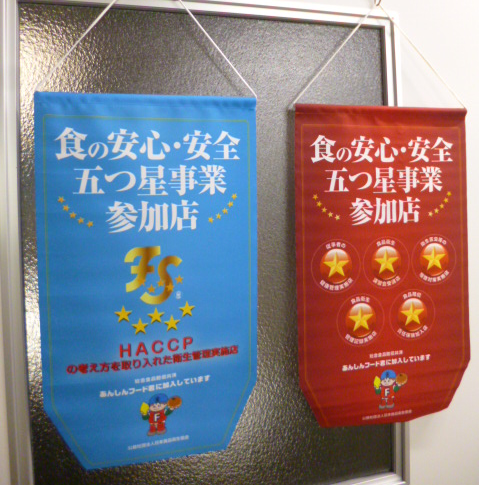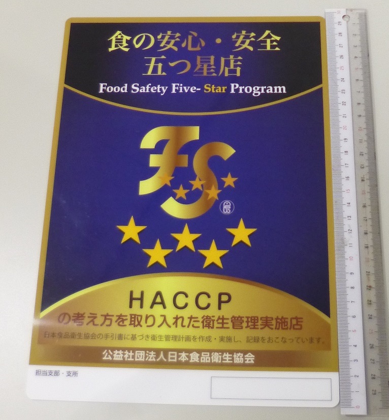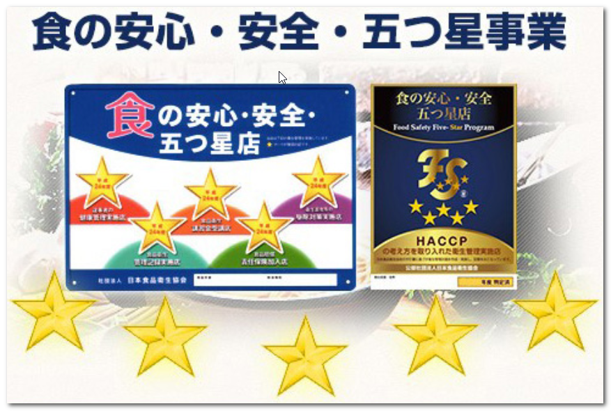 を貼付します。(毎年度、実施状況を確認して、その年度の合格判定済シールを張り替えます) - 当年度に全5項目に合格した参加店は、「食の安心・安全・五つ星店」として登録され日本食品衛生協会等のホームページに掲載されます。
